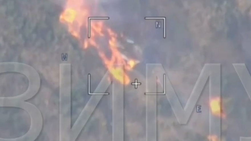 VOV.VN - Kênh RT của Nga ngày 19/11 đưa tin, máy bay không người lái cảm tử Lancet của nước này đã tập kích một xe tăng chiến đấu chủ lực của Ukraine, khiến phương tiện bị bốc cháy dữ dội. Vụ tấn công xảy ra tại khu vực Kursk, miền Tây nước Nga.
