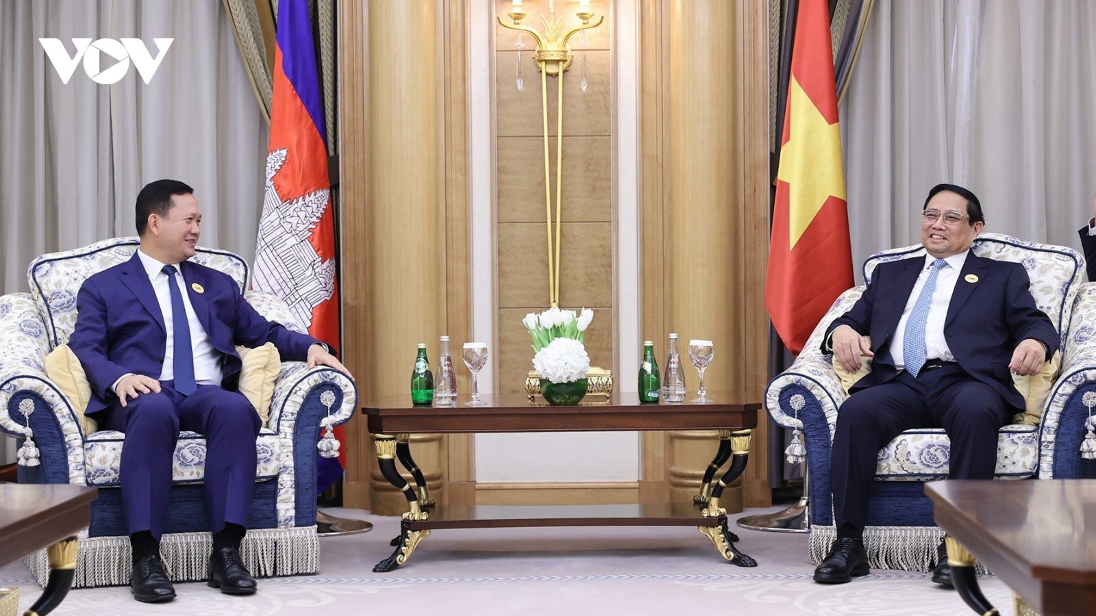 VOV.VN - Ngày 20/10, nhân dịp tham dự Hội nghị Cấp cao ASEAN - GCC tại thành phố Riadh,Saudi Arabia, Thủ tướng Chính phủ Phạm Minh Chính đã gặp lãnh đạo một số nước ASEAN: Thủ tướng Campuchia Hun Manet Tổng thống Philippines Ferdinand Romualdez Marcos Jr., Tổng thống Indonesia Joko Widodo và Thủ tướng Singapore Lý Hiển Long.