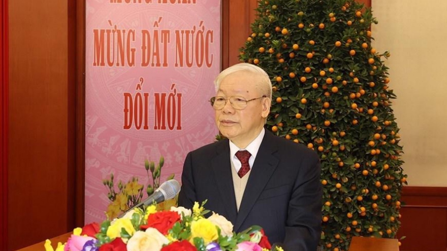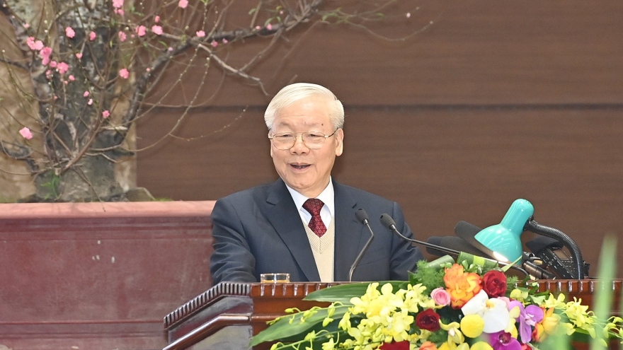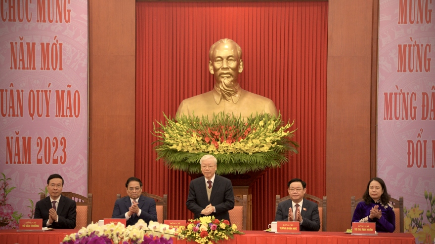 VOV.VN - Đây là khẳng định của Tổng Bí thư Nguyễn Phú Trọng tại buổi gặp mặt, chúc Tết lãnh đạo, nguyên lãnh đạo Đảng, Nhà nước, Mặt trận Tổ quốc Việt Nam và đồng bào, chiến sĩ cả nước, kiều bào ta ở nước ngoài. VOV xin giới thiệu toàn văn bài phát biểu.