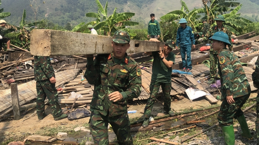 Huy động hàng nghìn cán bộ, chiến sỹ, dân quân sửa nhà giúp nhân dân sau dông lốc