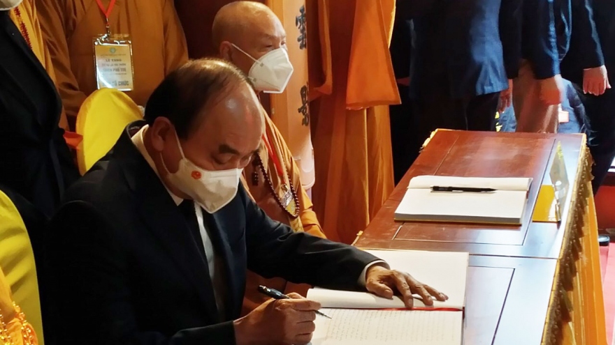 VOV.VN - Ghi sổ tang, Chủ tịch nước bày tỏ niềm tiếc thương Đại lão Hòa thượng Thích Phổ Tuệ, Pháp chủ Giáo hội Phật giáo Việt Nam, bậc cao tăng, thạch trụ, vị chân tu thanh bạch của Phật giáo thời nay