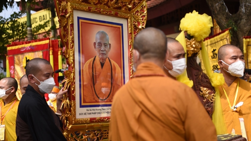 VOV.VN - Hội đồng Chứng minh, Hội đồng Trị sự đã tiến hành nghi thức suy tôn Trưởng lão Hòa thượng Thích Trí Quảng lên ngôi vị Quyền Pháp chủ Giáo hội Phật giáo Việt Nam.