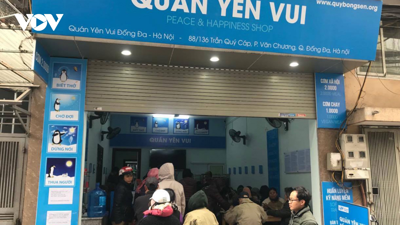 VOV.VN - Từ một tháng nay, tại ngõ 88 Trần Quý Cáp, quận Đống Đa, Hà Nội xuất hiện một quán cơm đặc biệt, quán cơm Yên Vui. Thực khách đến đây chủ yếu là những người lao động nghèo với suất ăn đủ đầy rau, cá thịt chỉ với 2000 đồng.