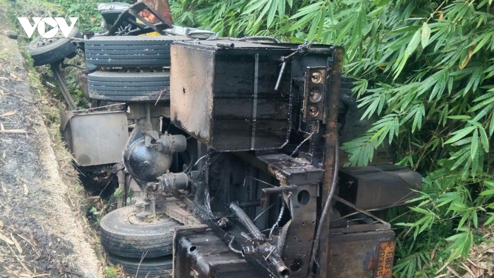 VOV.VN - Một chiếc xe bồn chở bê tông gặp nạn rơi xuống ao trên địa bàn xóm Thống Nhất 3 (xã Vô Tranh, Phú Lương, Thái Nguyên), tài xế mắc kẹt trong cabin và đã tử vong.
