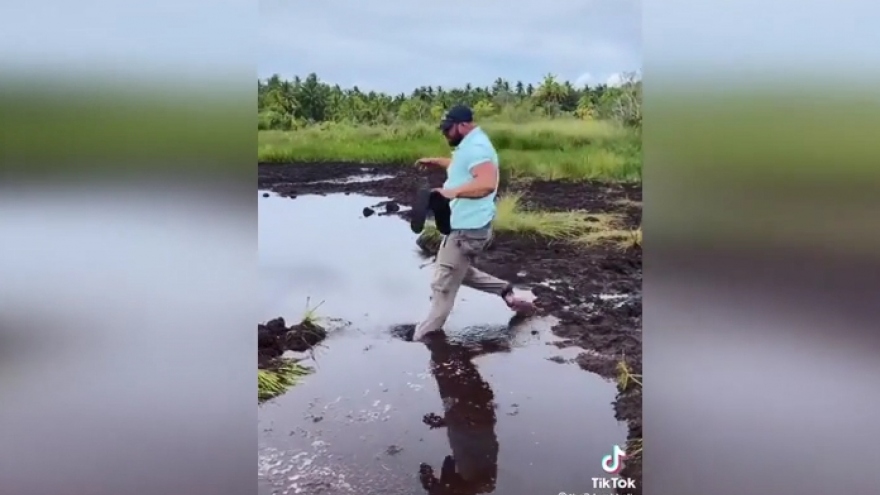 VOV.VN - Anh chồng người Anh Martin Lewis cố gắng đi qua đầm lầy mà không bị lấm bùn ở Maldives. Ai dè anh giẫm phải một hố sâu dưới lớp nước bùn và thụt cả người xuống đó, quần áo ướt hết. Trên đường đi về bằng xe máy, anh không muốn nói gì còn chị vợ thì không nhịn nổi cười.