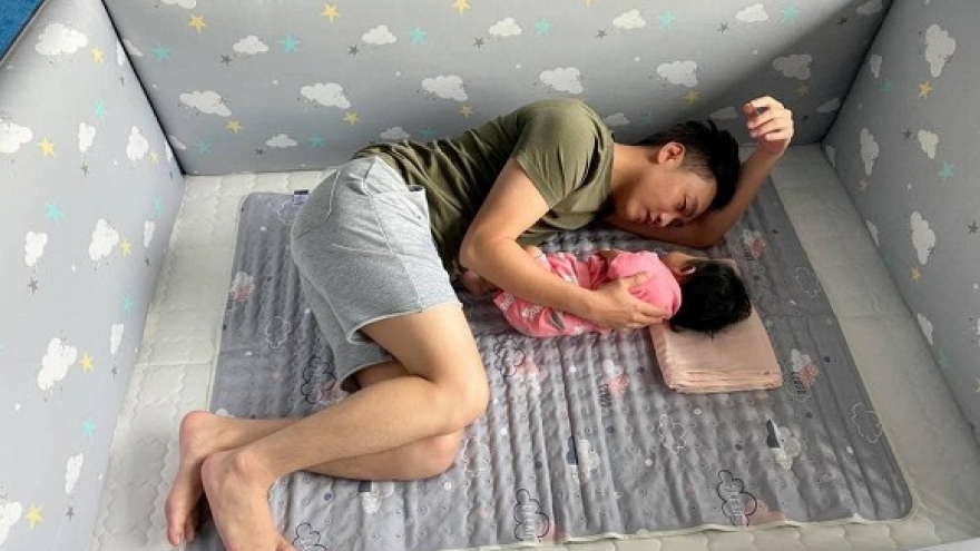 VOV.VN - Trên trang cá nhân Đàm Thu Trang đăng tải khoảnh khắc đáng yêu của hai bố con. Được biết, vừa đi làm về chưa kịp thay đồ nhưng "doanh nhân phố núi" đã vội nằm chơi và nói chuyện cùng "cục vàng".