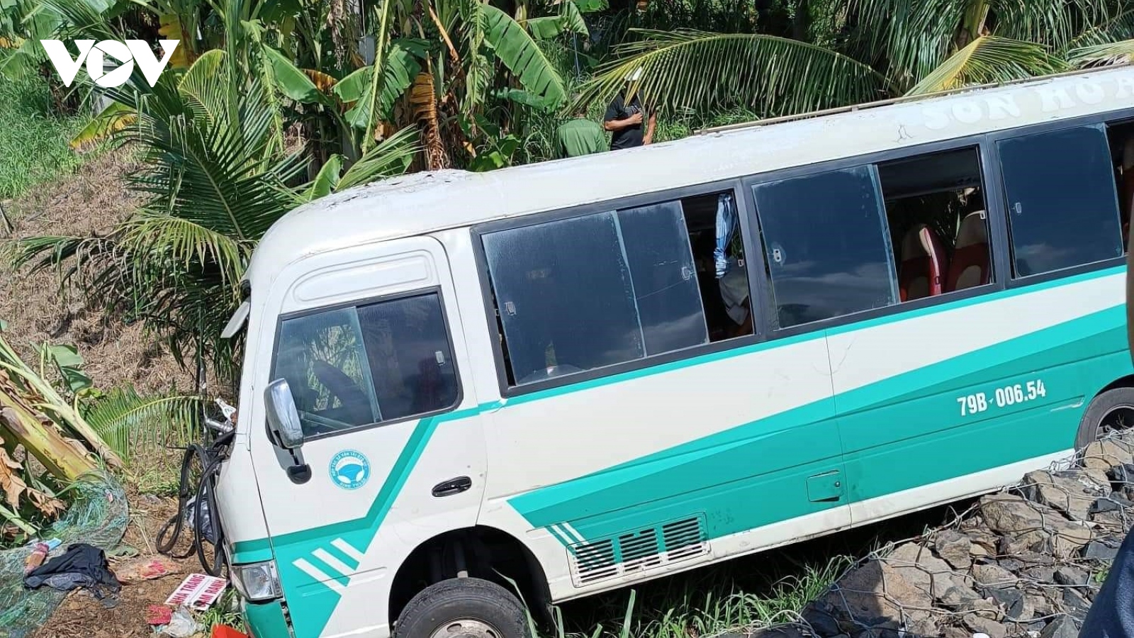 Xe khách lao xuống lề đường khiến nhiều người bị thương