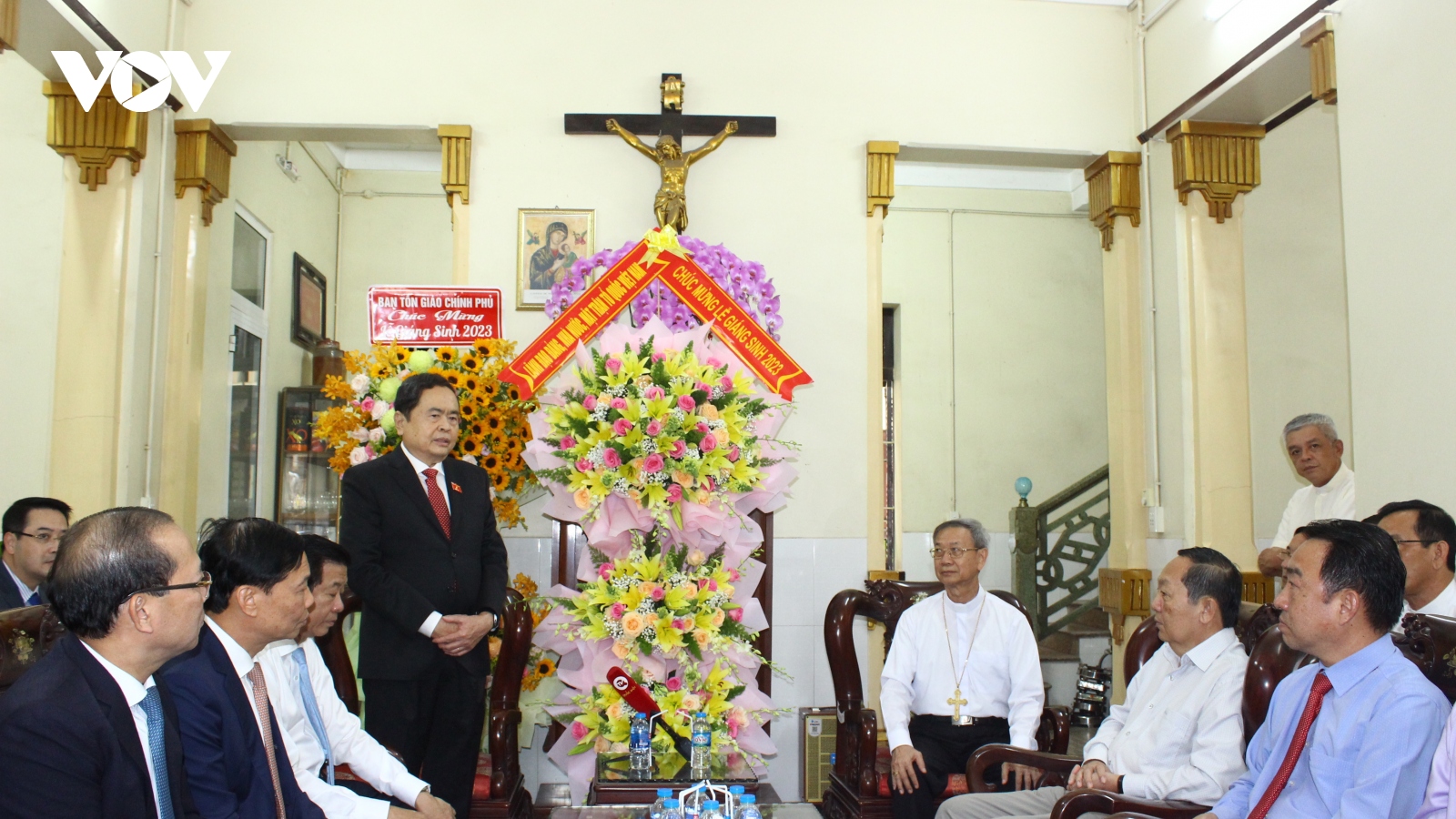 VOV.VN - Ngày 23/12 Ủy viên Bộ Chính trị, Phó Chủ tịch Thường trực Quốc hội Trần Thanh Mẫn cùng đại diện một số Bộ, ngành đã đến chúc mừng lễ Giáng sinh tại Thành phố Cần thơ và tỉnh Vĩnh Long.
