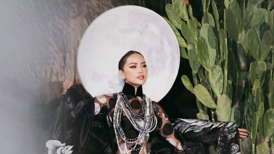 VOV.VN - Điểm nhấn của đêm diễn là khi tiếng hát Lệ Quyên cất những ca từ của bài hát Hàn Mặc Tử vừa lãng mạn chút đau thương nhưng cũng đầy khao khát, thì Hoa hậu Ngọc Châu sải bước trong sự kiêu hãnh của thiết kế độc đáo của NTK Đinh Văn Thơ.