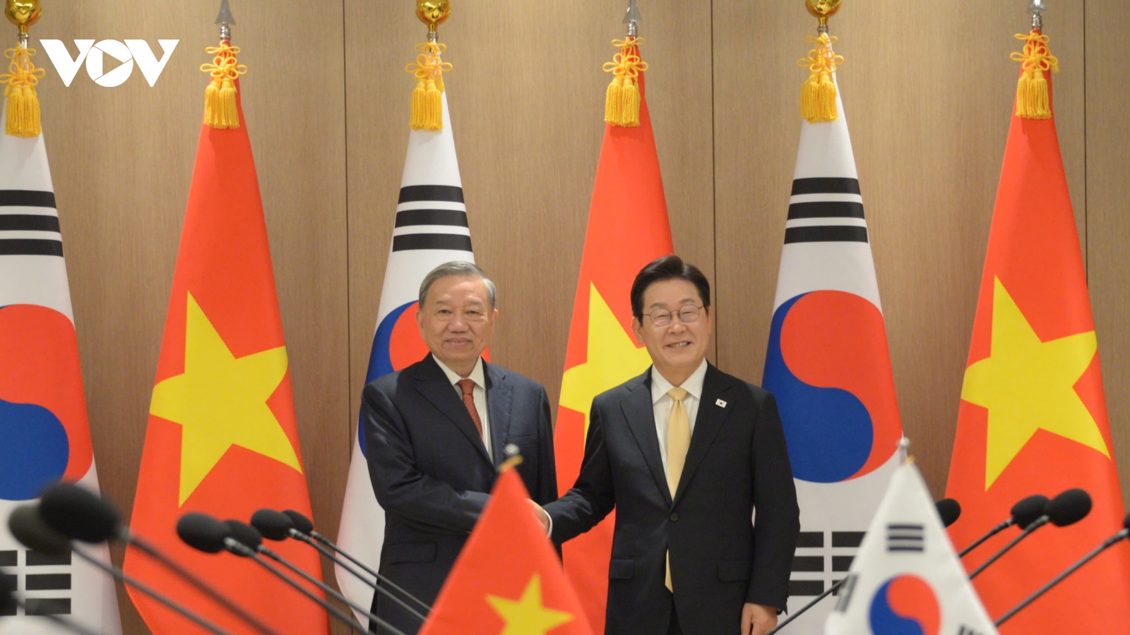 VOV.VN - Tổng Bí thư Tô Lâm và Tổng thống Lee Jae Myung đã trao đổi ý kiến và đạt nhận thức chung quan trọng về việc đẩy mạnh toàn diện và làm sâu sắc hơn quan hệ Đối tác chiến lược toàn diện Việt Nam - Hàn Quốc cũng như trong các vấn đề khu vực, quốc tế cùng quan tâm. VOV xin trân trọng giới thiệu toàn văn tuyên bố chung.