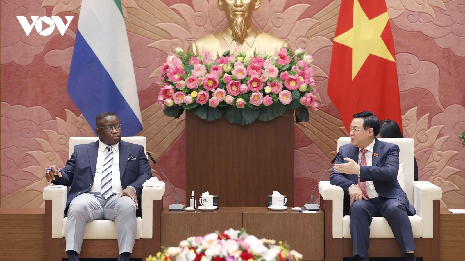 VOV.VN - Chiều tối 16/3, tại Nhà Quốc hội, Chủ tịch Quốc hội Vương Đình Huệ đã tiếp Tổng thống Sierra Leone Julius Maada Bio, nhân chuyến thăm chính thức Việt Nam từ ngày 14-20/3.