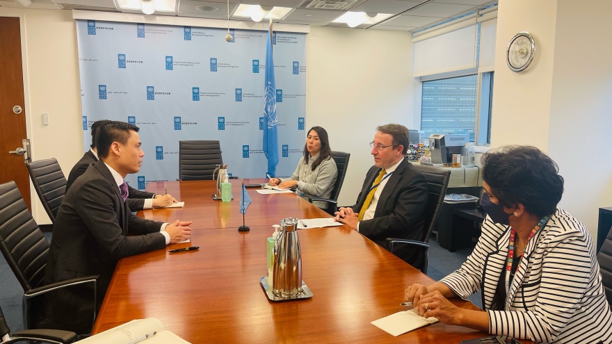 VOV.VN - Đại sứ Đặng Hoàng Giang, Trưởng Phái đoàn Đại diện thường trực Việt Nam tại Liên Hợp Quốc ngày 7/4 đã có buổi làm việc với ông Achim Steiner, Tổng giám đốc Chương trình Phát triển Liên Hợp Quốc (UNDP).