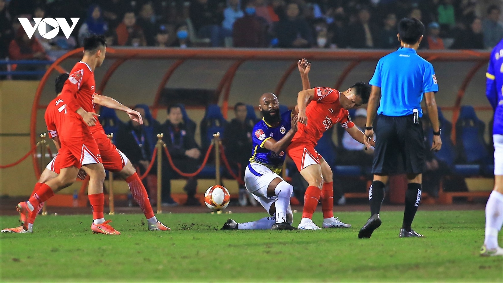 VOV.VN - Công an Hà Nội giành chiến thắng 5-0 trước Bình Định trong ngày bộ 3 ngoại binh đã tỏa sáng rực rỡ khi Rodrigues mở tỷ số ở phút 18, trước khi Jhon Cley nhân đôi cách biệt trên chấm phạt đền ở phút 39 và Tsoumou lập hat-trick (69', 81', 82').