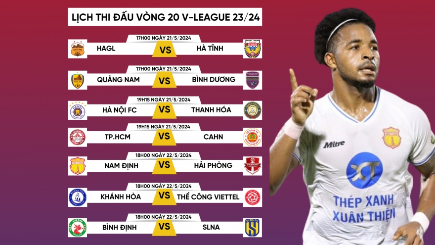 VOV.VN - Lịch thi đấu và trực tiếp bóng đá hôm nay 21/5, cuộc đọ sức giữa Hà Nội FC và Thanh Hóa sẽ là tâm điểm chú ý trong loạt trận vòng 20 V-League 2023/2024.