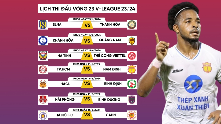 VOV.VN - Lịch thi đấu vòng 23 V-League 2023/2024, HAGL sẽ đối đầu với Bình Định, đội đang đua vô địch. Trong khi đó, Hà Nội FC tiếp đón nhà đương kim vô địch CAHN.