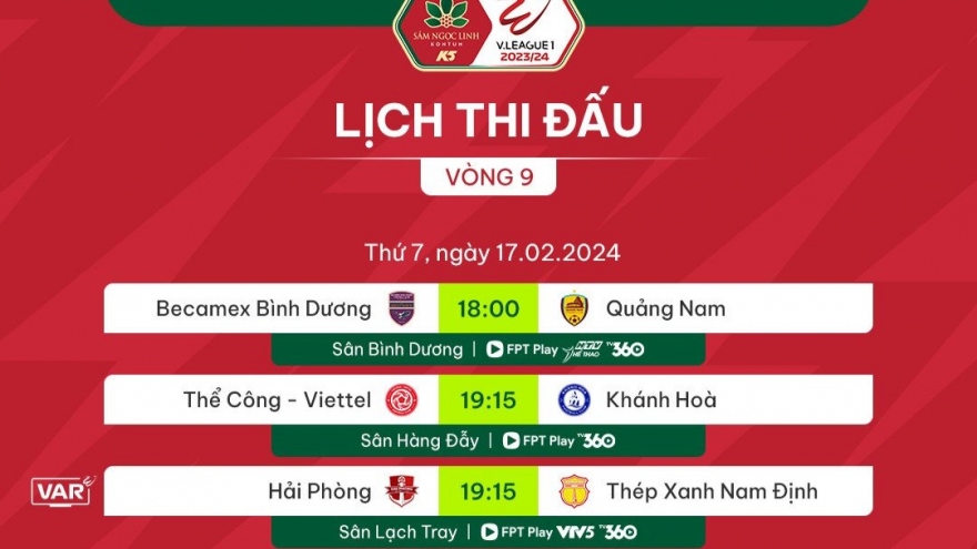 VOV.VN - Ở vòng 9 V-League 2023/2024, các cổ động viên sẽ được chứng kiến những trận đấu hấp dẫn và kịch tính. Hai trong số đó là màn so tài của Thanh Hóa vs Hà Nội FC và Hải Phòng vs Nam Định.