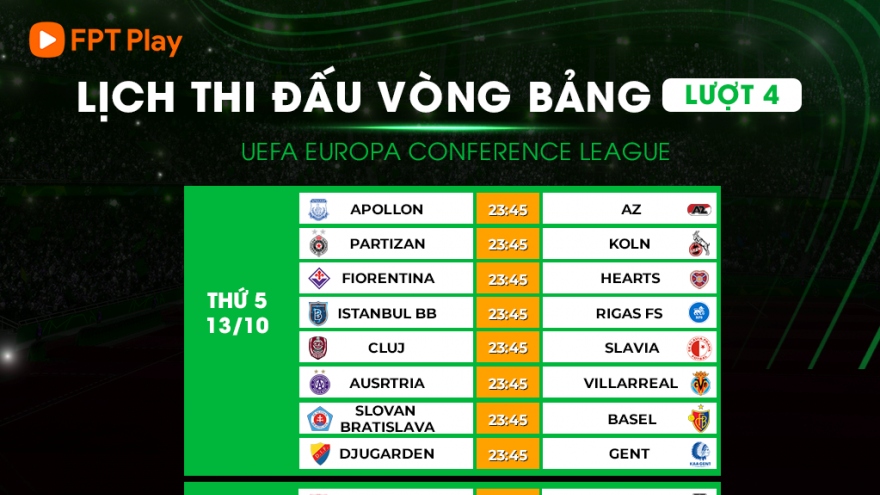 VOV.VN - Lịch thi đấu lượt trận thứ 4 vòng bảng Europa Conference League 2022/2023, đại diện Ngoại hạng Anh - West Ham hướng đến tấm vé vượt qua vòng bảng khi được đá trên sân nhà gặp Anderlecht.