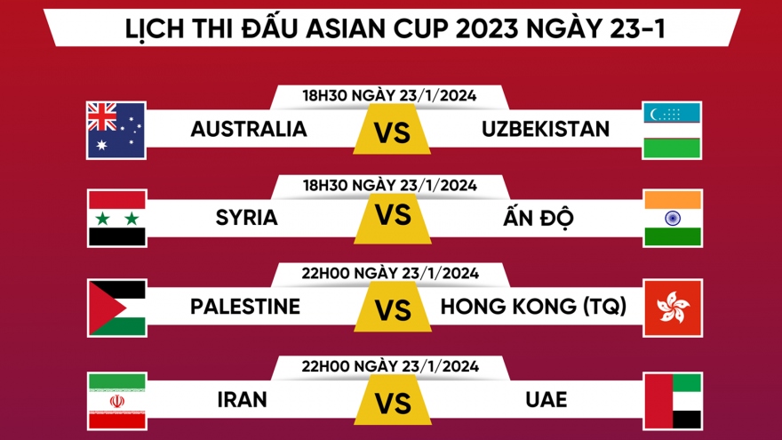 Lịch thi đấu và trực tiếp Asian Cup 2023 hôm nay 23/1VOV.VN - Lịch thi đấu và trực tiếp Asian Cup 2023 hôm nay 23/1 sẽ diễn ra 4 trận đấu trong khuôn khổ bảng B và C.