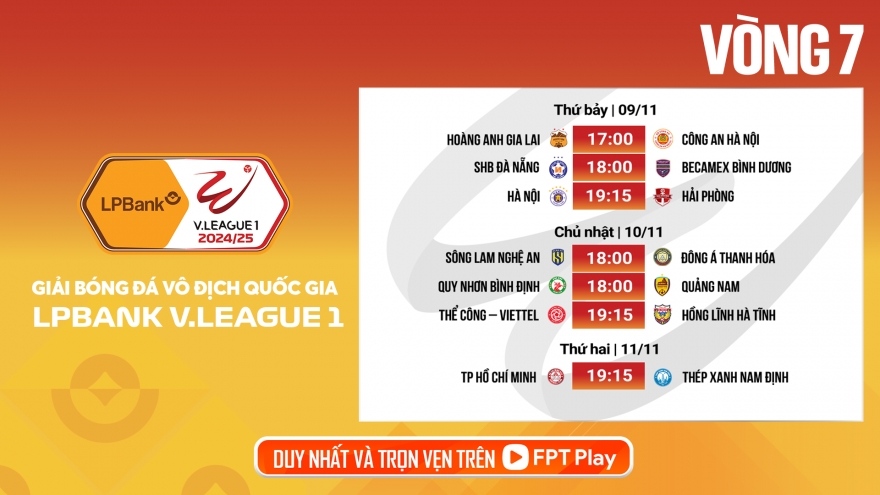 VOV.VN - Lịch thi đấu và trực tiếp bóng đá Việt Nam hôm nay 9/11, người hâm mộ sẽ hướng sự chú ý của mình tới các trận đấu tại vòng 7 V-League 2024/2025.