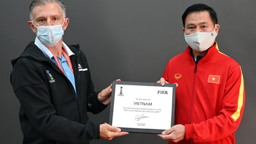 VOV.VN - Đại diện FIFA cũng như BTC giải đánh giá cao công tác chuẩn bị về mặt kỹ thuật của ĐT Futsal Việt Nam và đã trao bảng danh vị, chứng nhận tham gia VCK FIFA Futsal World Cup 2021.