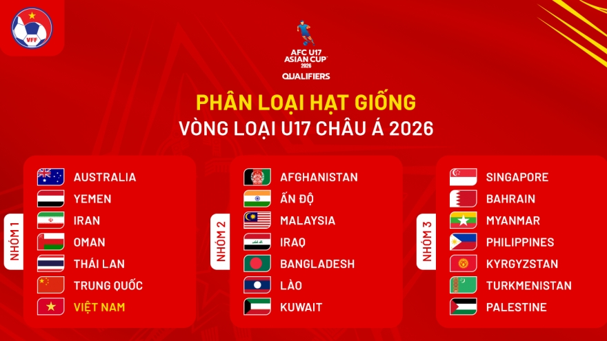 VOV.VN - Cập nhật bảng xếp hạng vòng loại U17 châu Á 2026 mới nhất sau lượt trận thứ 2, U17 Việt Nam thắng 14-0 trước U17 Quần đảo Bắc Mariana để có chiến thắng đậm nhất trong năm 2025 của các cấp độ bóng đá Việt Nam.