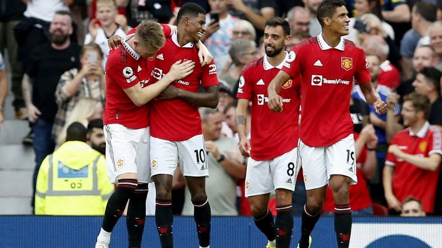 VOV.VN - MU giành thắng lợi với tỷ số 3-1 trước Arsenal trên sân nhà Old Trafford trong ngày tân binh trị giá 100 triệu Euro - Antony ghi bàn mở tỷ số, còn Rashford lập một cú đúp.