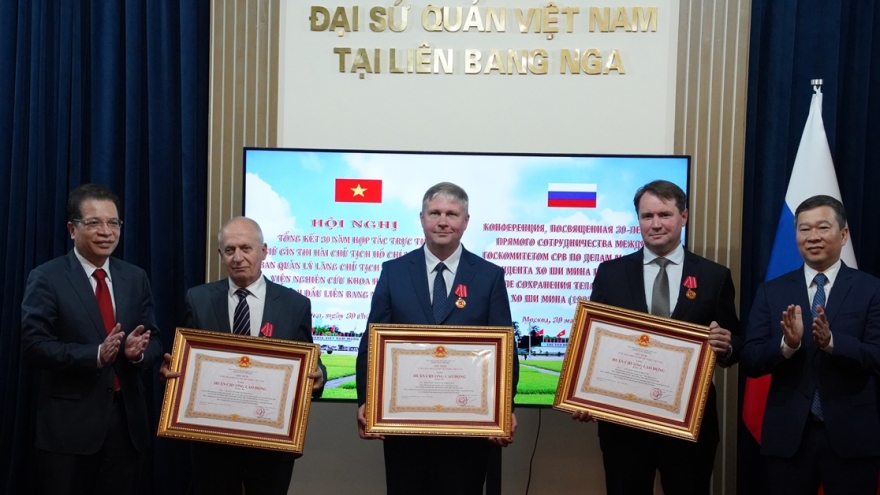 VOV.VN - Chiều 30/5, Ban Quản lý Lăng Chủ tịch Hồ Chí Minh đã phối hợp với Đại sứ quán Việt Nam tại Liên bang Nga và Viện Nghiên cứu khoa học dược liệu và tinh dầu LB Nga tổ chức Hội nghị tổng kết 30 năm hợp tác trực tiếp giữ gìn lâu dài, bảo vệ tuyệt đối an toàn thi hài Chủ tịch Hồ Chí Minh.
