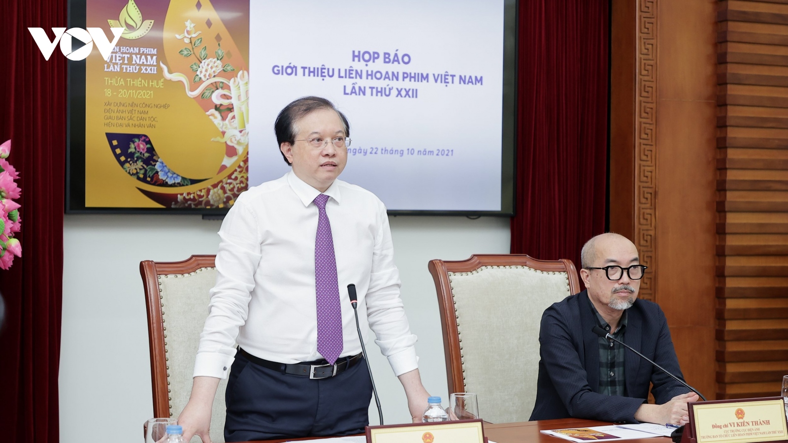 VOV.VN - Sáng nay (22/10), tại Hà Nội, Bộ Văn hóa, Thể thao và Du lịch đã họp báo công bố Liên hoan Phim Việt Nam lần thứ XXII-2021 diễn ra từ ngày 18-20/11 tại tỉnh Thừa Thiên - Huế.