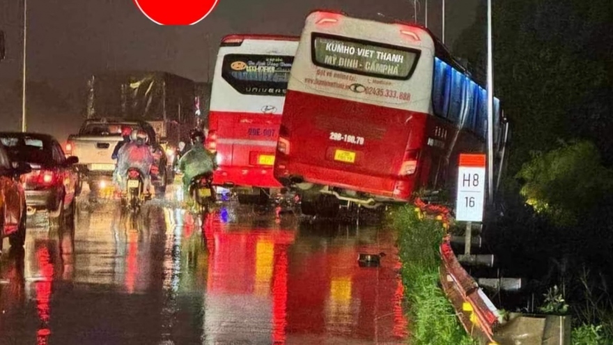 VOV.VN - Tài xế xe tải lấn làn gây ra va chạm khiến 2 xe khách đi ngược chiều trên QL18, đoạn qua thị xã Quế Võ (Bắc Ninh) khiến 1 người tử vong, 2 người bị thương.