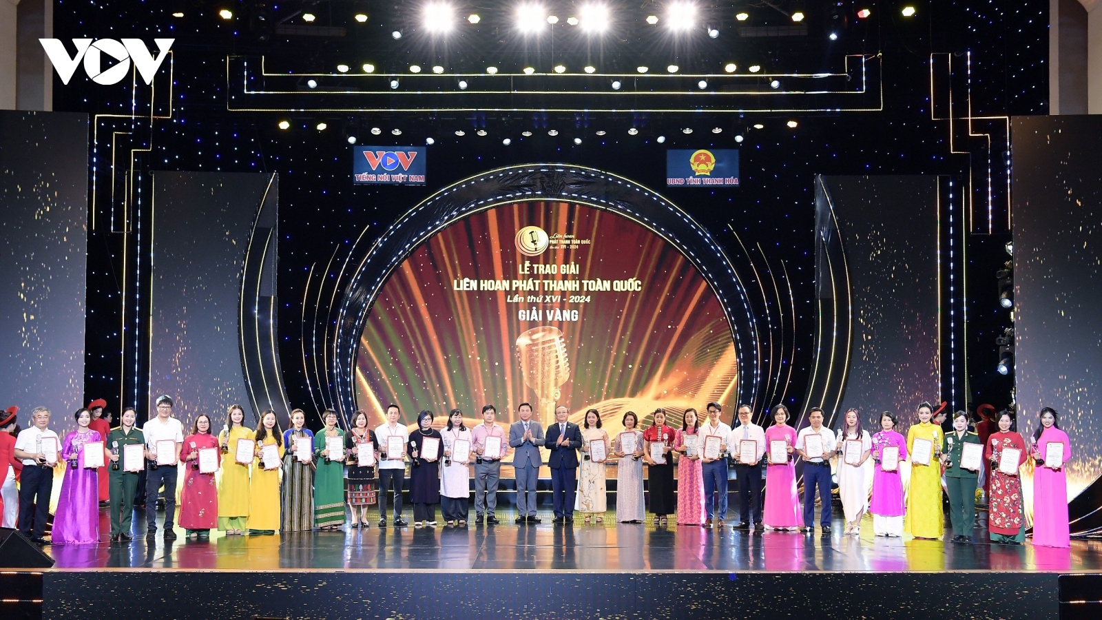 VOV.VN - Tối nay (13/7), tại Nhà hát Lam Sơn (TP Thanh Hóa) diễn ra lễ Bế mạc và Trao giải Liên hoan Phát thanh Toàn quốc lần thứ XVI năm 2024. Chương trình được tường thuật trực tiếp trên các kênh phát thanh của VOV, kênh Truyền hình VTC1, VOVTV và các nền tảng số của VOV, Đài Phát thanh truyền hình Thanh Hóa và các Đài Phát thanh, truyền hình trong cả nước.