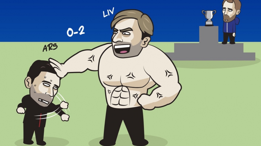 Biếm họa 24h: Liverpool "bắt nạt" Arsenal, chờ tranh cúp với ChelseaVOV.VN - Liverpool "dễ dàng" bắt nạt Arsenal ngay trên sân Emirates để vào chung kết Cúp Liên đoàn Anh và sẽ tranh danh hiệu với Chelsea.