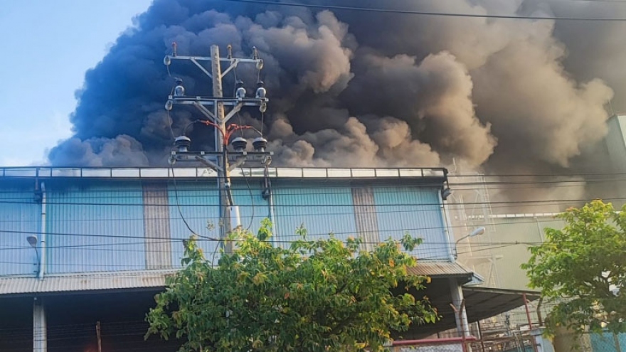 VOV.VN - Sáng nay (2/6), một vụ cháy lớn xảy ra tại Khu công nghiệp Nhơn Trạch 2, huyện Nhơn Trạch, tỉnh Đồng Nai, khiến cho gần 1.000 m2 nhà xưởng bị thiêu rụi, thiệt hại nhiều tài sản.
