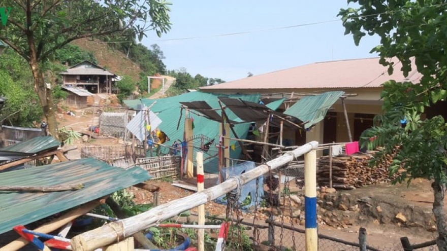 VOV.VN - Trận lốc xoáy kinh hoàng khiến nhiều bản ở xã Keng Đu, huyện biên giới Kỳ Sơn thiệt hại nặng nề, thậm chí 1 dãy nhà của trạm y tế bị thổi bay.