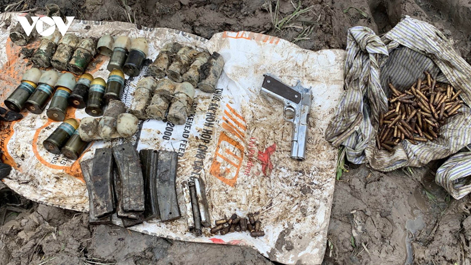 VOV.VN - Trong lúc cải tạo đất để sản xuất nông nghiệp, một người dân ở xã Mỹ Khánh, thành phố Long Xuyên, tỉnh An Giang phát hiện một khẩu súng cùng hàng trăm viên đạn và 26 quả đạn M79.