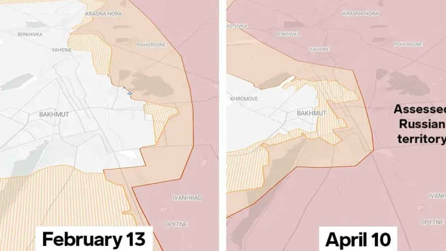 VOV.VN - Bản đồ được Viên Nghiên cứu Chiến tranh công bố đã cho thấy Nga từng bước khép chặt vòng vây ở Bakhmut - một trong những trận địa ác liệt nhất của cuộc xung đột.