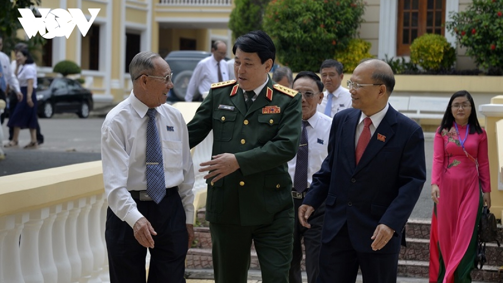 VOV.VN - Trong khuôn khổ chuyến thăm và làm việc tại Lào, chiều 17/11, Đại tướng Lương Cường, Ủy viên Bộ Chính trị, Ủy viên Thường vụ Quân ủy Trung ương, Chủ nhiệm Tổng cục Chính trị Quân đội nhân dân Việt Nam dẫn đầu Đoàn đại biểu cán bộ chính trị cấp cao QĐND Việt Nam đến chào xã giao Tổng Bí thư, Chủ tịch nước CHDCND Lào Thongloun Sisoulith.