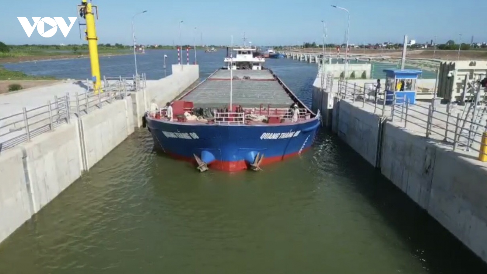 VOV.VN - Ngay sau khi Bộ GTVT công bố mở luồng đường thủy nội địa Quốc gia Kênh và Âu tàu Nghĩa Hưng (hay còn gọi là cụm công trình kênh đào nối sông Đáy-Ninh Cơ). Các loại tàu có tải trọng đến 3.000 tấn có thể vào âu tàu để được sắp xếp đi qua kênh nối này và rút ngắn hành trình 5-6 giờ so với trước kia…