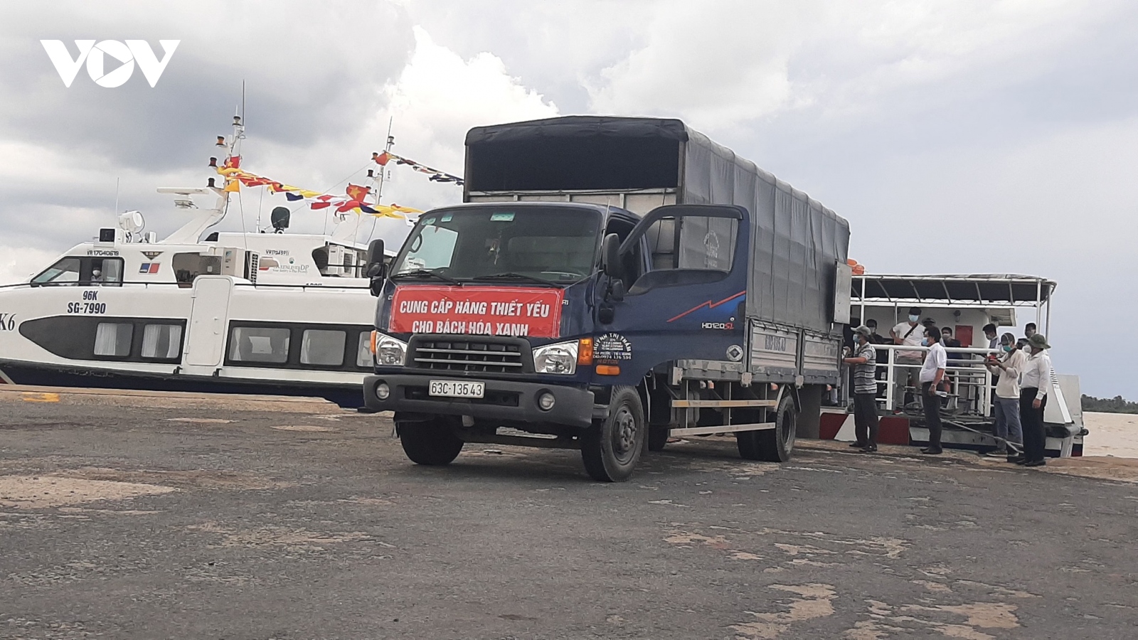 VOV.VN - Sáng 19/7, tại bến phà Rạch Miễu, thuộc xã Song Thuận, huyện Châu Thành, tỉnh Tiền Giang, dưới sự chứng kiến của lãnh đạo tỉnh Tiền Giang, các doanh nghiệp, hợp tác xã ở địa phương đưa hàng nông sản xuống tàu cao tốc, khởi hành chuyến vận chuyển “luồng xanh” đầu tiên đến TP.HCM