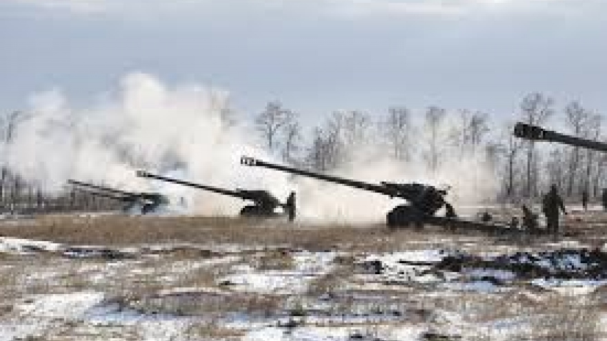 VOV.VN - Sử dụng khẩu 2S19 Msta-S, binh lính Nga tiến hành nã pháo chính xác theo tọa độ vào cứ điểm của quân đội Ukraine, tạo ra nổ lớn và cột khói bốc cao tại mục tiêu.