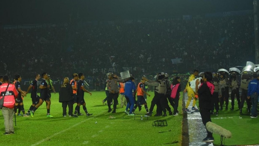 VOV.VN - Tổng Thanh tra Cảnh sát Đông Java - Nico Afinta xác nhận con số thương vong và thông tin ban đầu về lý do xảy ra vụ bạo loạn ở trận Arema 2-3 Persebaya.