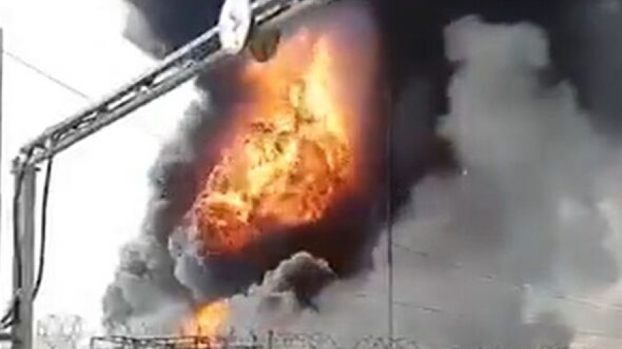 VOV.VN - Cơ quan báo chí thuộc Bộ Tình trạng Khẩn cấp của Cộng hòa nhân dân Donetsk tự xưng ngày 21/11 cho biết, kho chứa dầu ở thành phố Makiivka, thuộc tỉnh Donetsk đã bị bốc cháy dữ dội sau khi trúng đạn pháo.