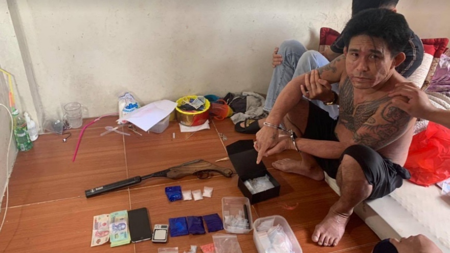 VOV.VN - 2 đối tượng nữ đã bị bắt quả tang tại ngã 3 hầm Hải Vân, thành phố Đà Nẵng khi đang vận chuyển 1 gói hình chữ nhật, bên trong chứa các chất tinh thể màu trắng, trọng lượng khoảng 1kg.
