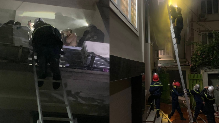 VOV.VN - Lực lượng chức năng thuộc Công an quận Hoàn Kiếm và Ba Đình vừa mới giải cứu thành công 4 người mắc kẹt trong vụ cháy xảy ra lúc nửa đêm tại Hà Nội.