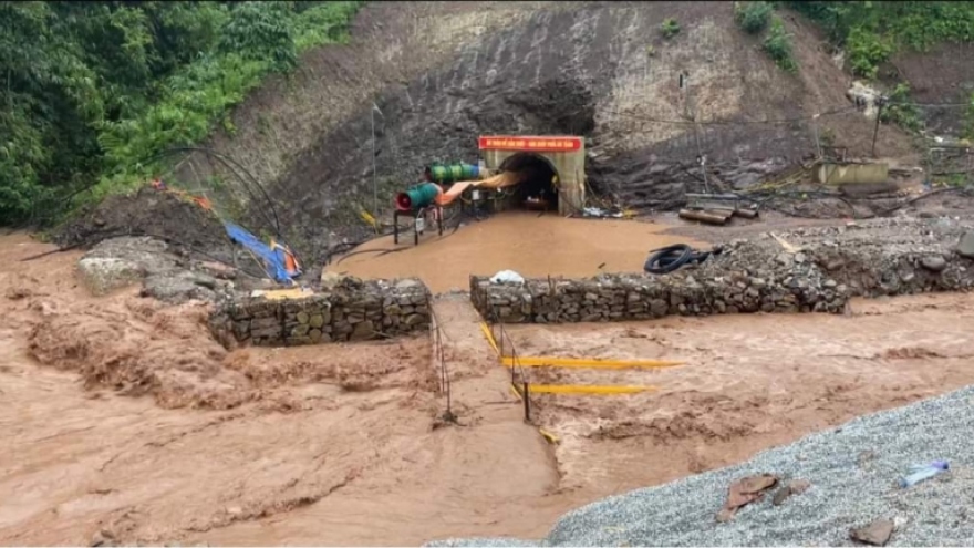 VOV.VN - Nước lũ kéo về trên khu vực suối Phi Lĩnh khiến nước tràn vào hầm thủy điện số 3, khu vực đang tìm kiếm công nhân Lý A Dia bị mắc kẹt khiến công tác cứu hộ phải tạm dừng.