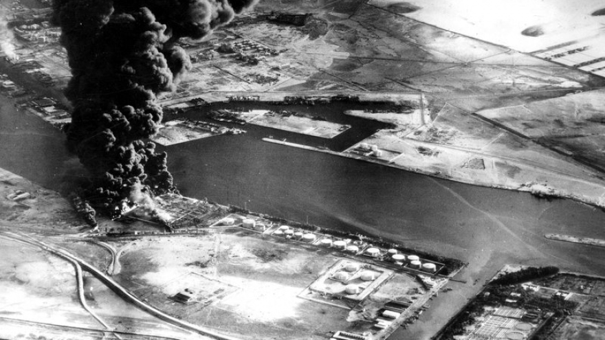 VOV.VN - Hàng trăm 100 tàu chở hàng hóa, dầu thô, khí đốt đang bị mắc kẹt sau khi một tàu chở hàng siêu trường siêu trọng bất ngờ mắc cạn, chắn ngang kênh đào Suez (Ai Cập).