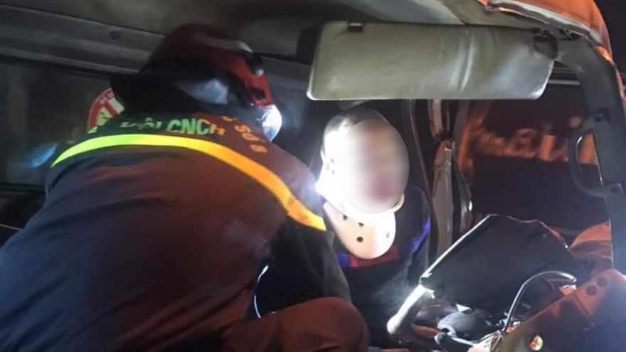 VOV.VN - Cảnh sát phòng cháy, chữa cháy và cứu nạn, cứu hộ đã phải cưa cabin ô tô để kịp thời cứu 2 người mắc kẹt sau vụ tai nạn trên cầu Thanh Trì, Hà Nội.