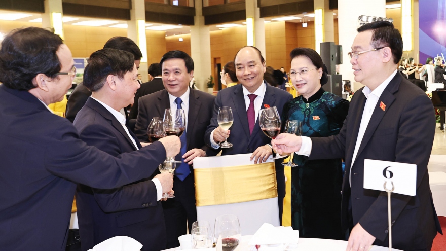 VOV.VN - Cuộc gặp mặt có sự tham dự của Tổng Bí thư, Chủ Tịch nước Nguyễn Phú Trọng, Thủ tướng Nguyễn Xuân Phúc, Chủ tịch Quốc hội Nguyễn Thị Kim Ngân.