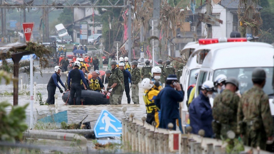 Hàng nghìn hộ dân ở Nhật Bản bị cô lập vì mưa lũVOV.VN - Mưa lũ vẫn tiếp diễn, khiến các tỉnh tại Tây Nhật Bản như Kumamoto, Fukuoka, Kagoshima… ảnh hưởng nặng nề.