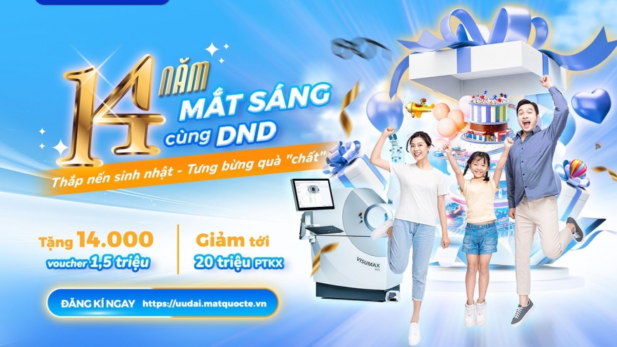 VOV.VN - 14.000 voucher phẫu thuật khúc xạ được Bệnh viện Mắt Quốc tế DND làm quà tặng tri ân cho khách hàng trong chuỗi siêu sự kiện mừng kỷ niệm 14 năm thành lập.