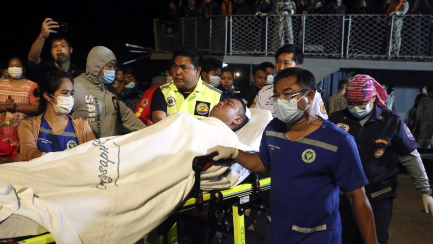 VOV.VN - Quân đội Thái Lan tiếp tục huy động máy bay trực thăng, tàu chiến và máy bay không người lái để tìm kiếm 29 thủy thủ vẫn còn mất tích, một vài người trong số này không có áo phao.